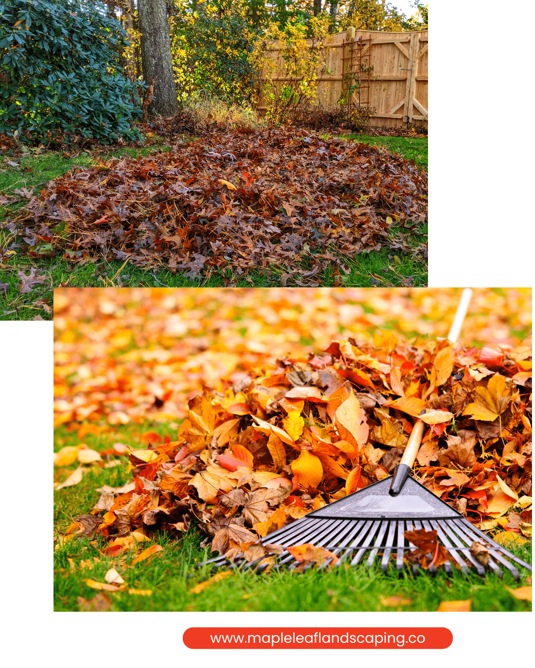 YES, you should rake most of your leaves if they’re covering your lawn or on concrete or solid surfaces where they can cause a slipping hazard. Leaving leaves on your grass all winter can cause damage to your lawn. Sunlight and other nutrients can’t get through the leaves to the grass to keep it alive all winter.